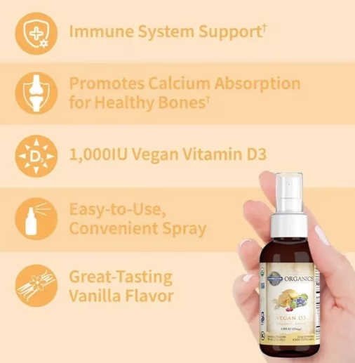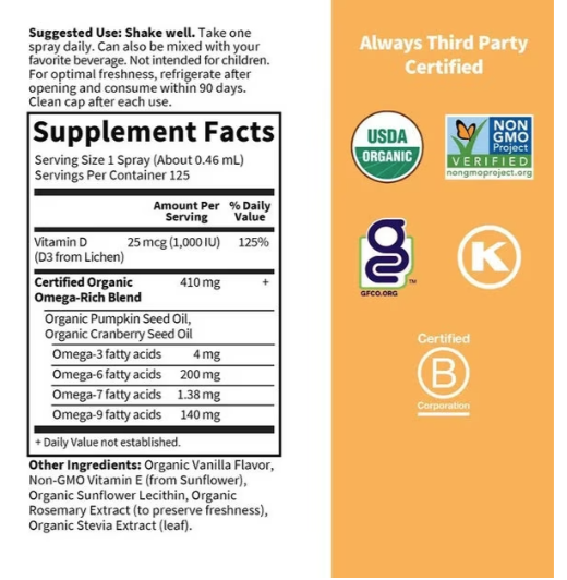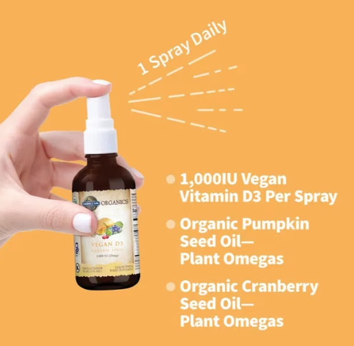 Made from real, nutritious food - not lanolin, (cholesterol stripped from sheep’s wool) mykind Organics Vegan D3 is Certified USDA Organic, Non-GMO Project Verified and is free of any synthetic binders or fillers. All this is offered in a delicious vanilla spray!