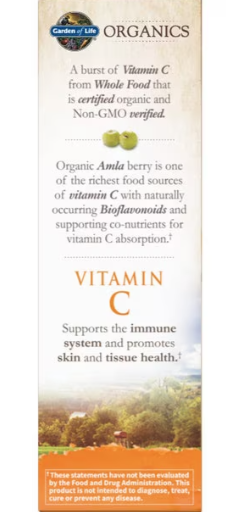 • 60mg of Vitamin C from Certified Organic/Non-GMO Verified Whole Foods
