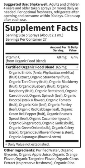 mykind Organics Vitamin C—a Certified USDA Organic, Non-GMO Project Verified vitamin C spray from real foods to meet 100% of your daily vitamin C needs.