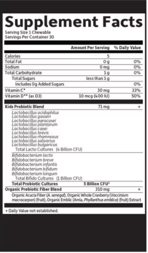 Organic Kids+—a unique Certified USDA, Non-GMO Project Verified Organic yummy chewable probiotic especially for kids to offer immune system and digestive support.*